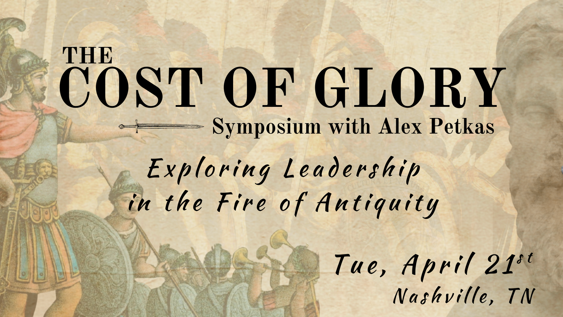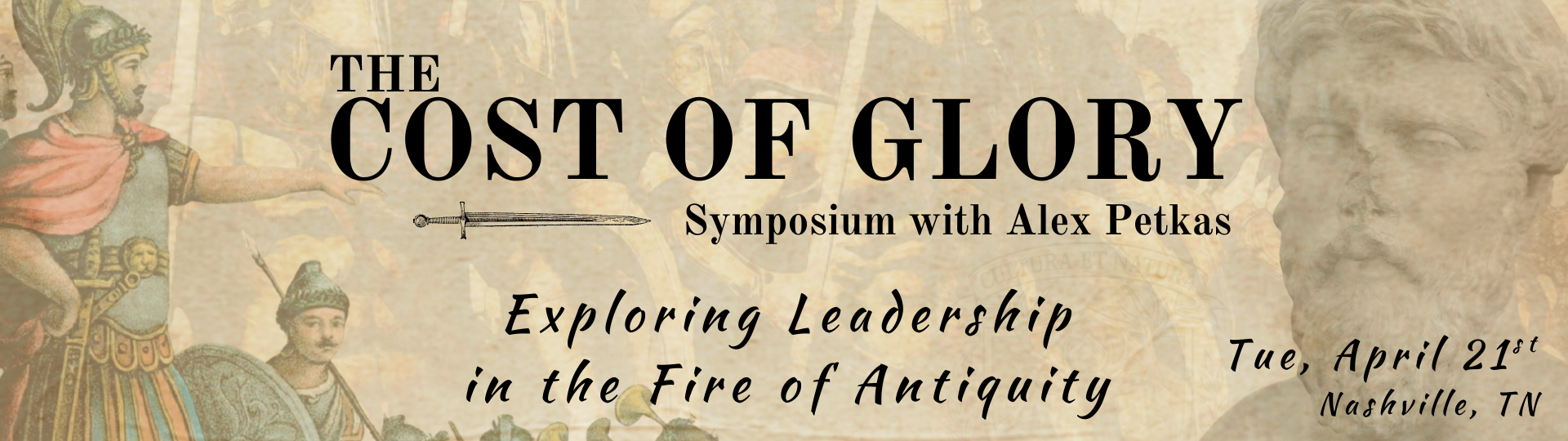 This is a special dinner event with Alex Petkas, Founder of The Cost of Glory & The Classical Society, joining our Symposium via video call.